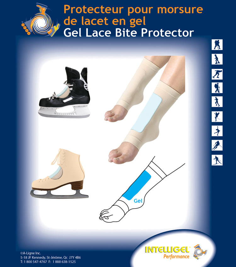 The Lace Bite Protector is a soft, comfortable, stretchable surgical fabric sleeve. This unique device is designed to position and hold our patented Polymer Gel Pad on the top of the foot which slowly releases a medical grade mineral oil USP (United States Pharmaceutical) to absorb friction and pressure and the ‘’pinching sensation’’ associated with tightly laced high top foot wear.